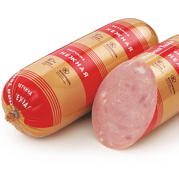 Ветчина «Нежная» от бренда «Мясная тема» имеет нежную консистенцию и приятный лёгкий вкус. Продукт подходит для украшения праздничного стола, а также для приготовления салатов и завтрака