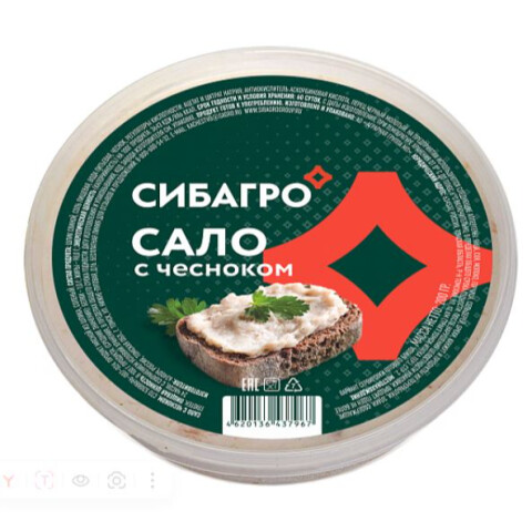 Сало с чесноком(101р/опт) 0,2кг СИБАГРО
