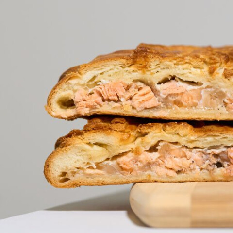 Спиральки (780р/опт) из слоёного теста мясо кеты