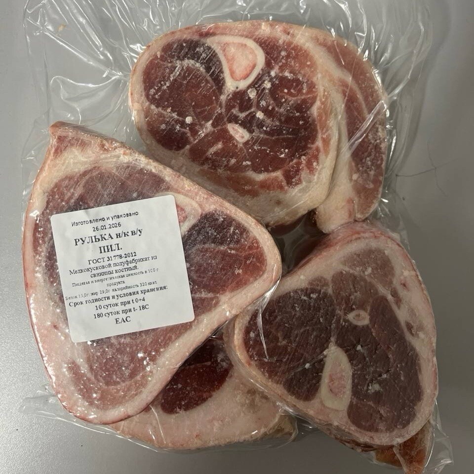 Свиная рулька продаётся в свежемороженном виде, пиленная, не калиброванными кусками, на кости. Упаковка в стретч плёнку.