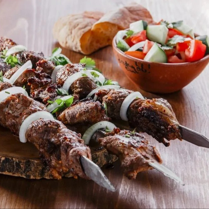 Шашлык Кавказский - это полуфабрикат мясной из свинины, мелкокусковой, бескостный. В его состав входит свинина, маринад "Кавказский", соль пищевая. Продаётся в охлаждённом виде, не калиброванными кусочками, в вакуумной упаковке.