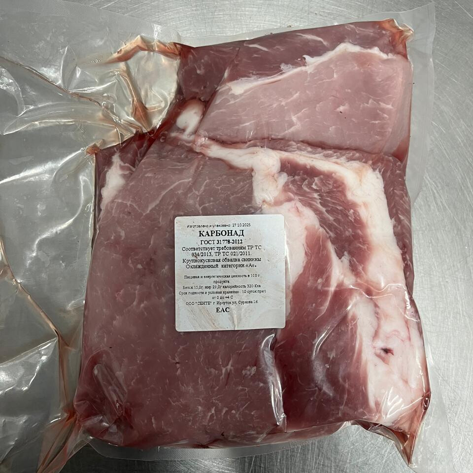 Свиной карбонад продаётся в охлаждённом виде, целыми, не распиленными кусками, без кости. Упаковка в стретч плёнку.