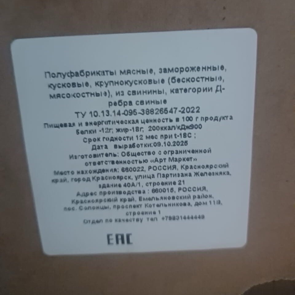 Свиные ребра лента (опт 351р/369р) АРТ МАРКЕТ