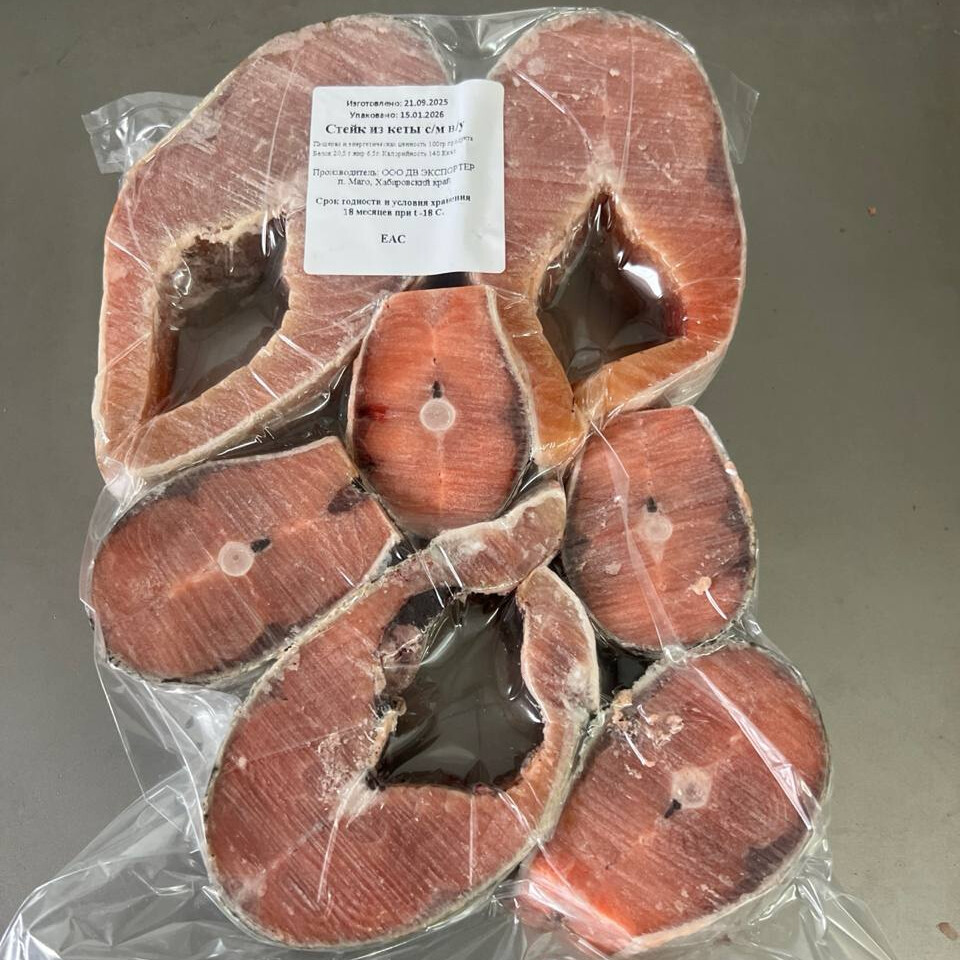 Цена указана за 1 кг. Стейк из кеты — порционный кусок, отделенный от туловища крупной морской рыбы. Стейк имеет нежный, идеально сбалансированный вкус. Сочное диетическое мясо кораллового оттенка имеет тонкий морской аромат. Способ приготовления: стейки можно замариновать, обвалять в специях, сбрызнуть лимонным соком и обжарить на сковороде, гриле или мангале, а также можно запечь в фольге или духовом шкафу. Вес коробки 9-12кг.