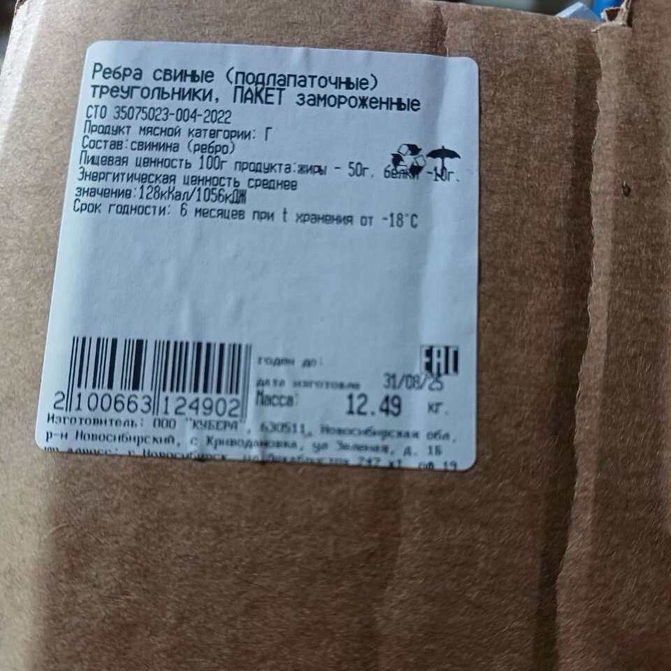 Ребра свиные (306р/опт) ПОДЛОПАТОЧНЫЕ МЯСНЫЕ (фасованые)