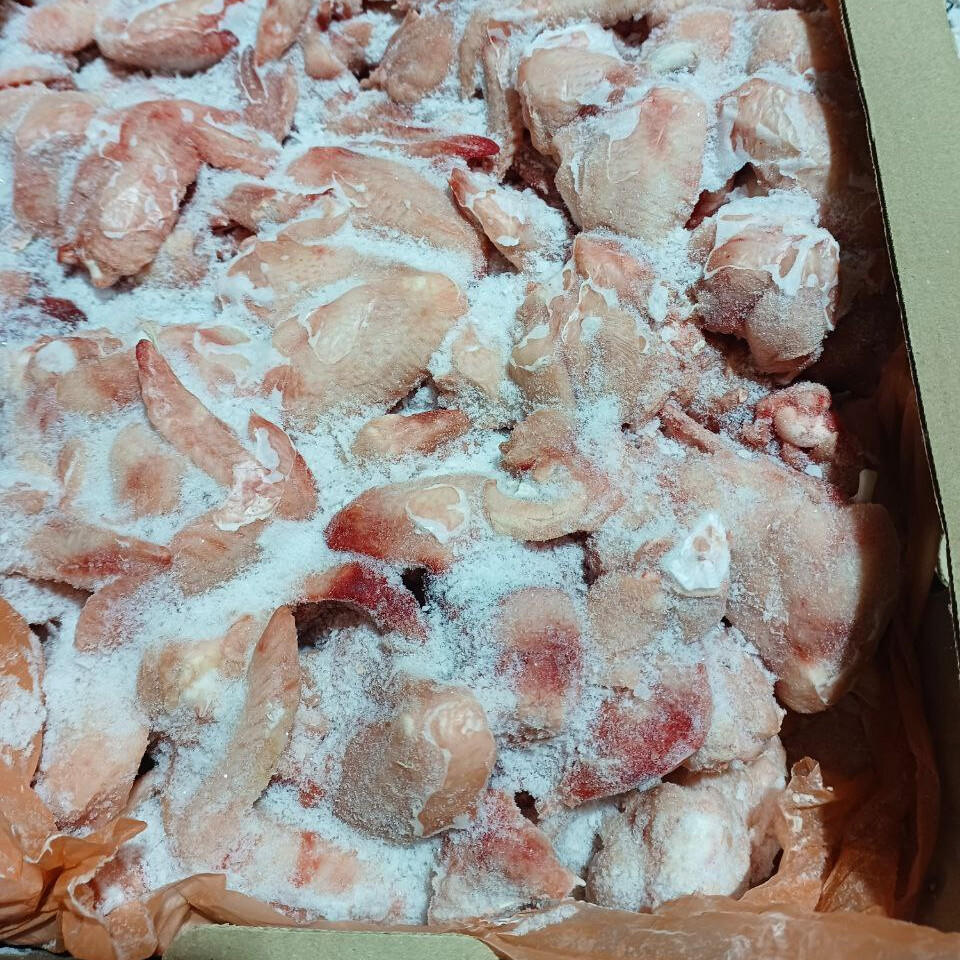 Крыло куриное с повреждениями (нарушена целостность кожи/кости/кровоподтеки/наличие перьев и т.п.). Так же могут быть 1-2 фаланги крыла, с плечевой и без плечевой части.