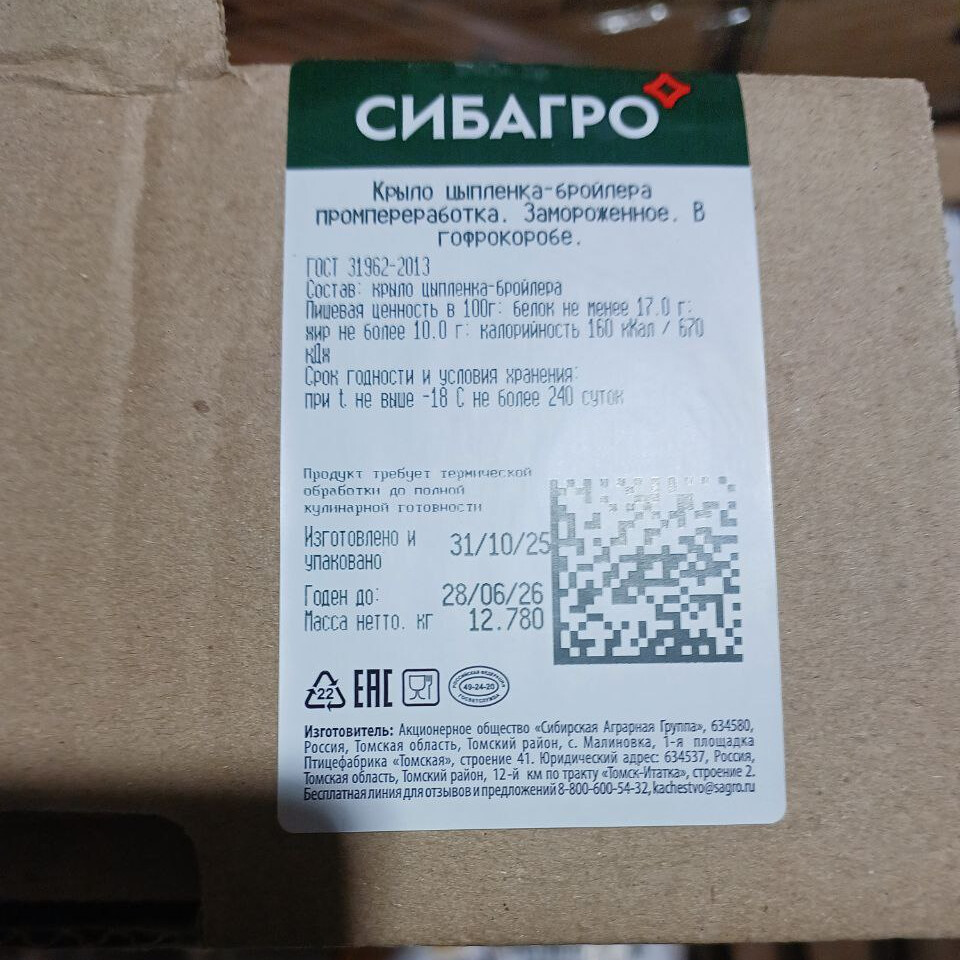 СИБАГРО П/П Крыло кур (138р/опт) МОНОЛИТ
