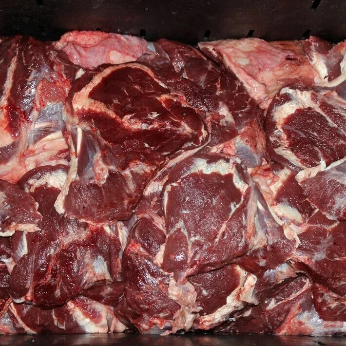 Мясо говяжьих голов - мясо без кости срезанное с головы говяжьей. В нем может присутствовать: подъязычный срез, щековина, головная обрезь. Без кости. Продаётся в свежемороженном виде, не калиброванными кусочками. Упаковка в полиэтиленовый пакет.