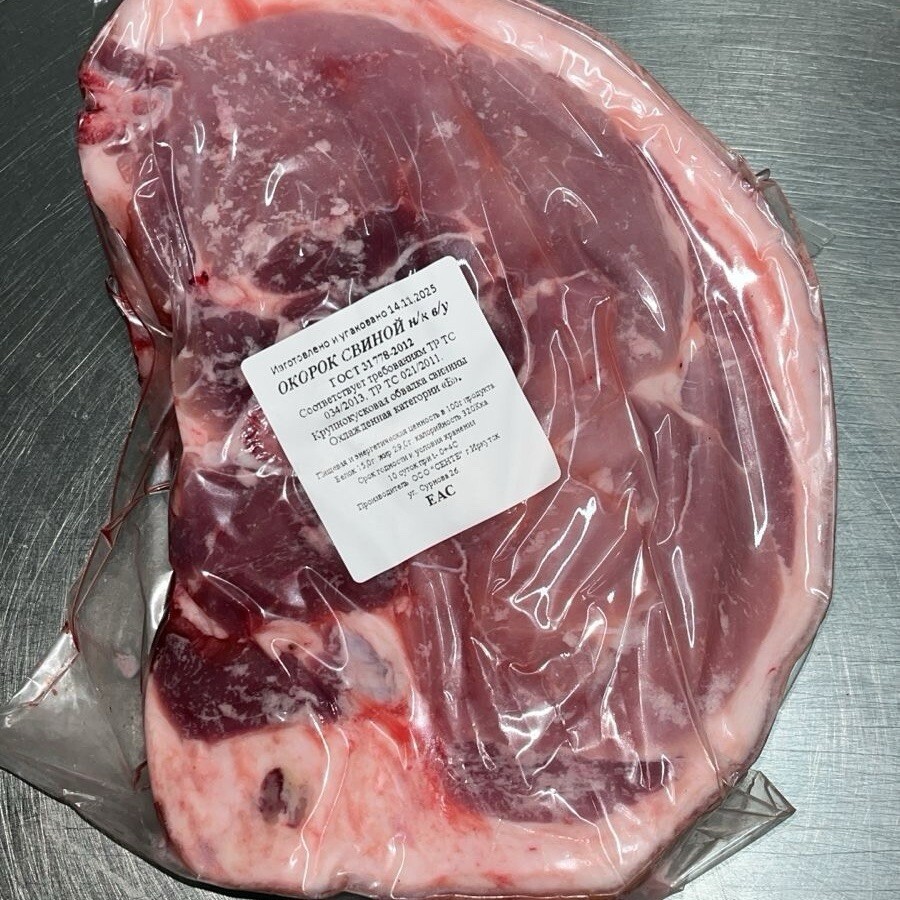 Свиной окорок - часть свиной туши, прилегающей к поясничной и тазобедренной части. Отличается сочной и плотной мякотью, окруженной тонким слоем пленки и жира. Продаётся в свежемороженном виде, распиленными, не калиброванными кусочками.